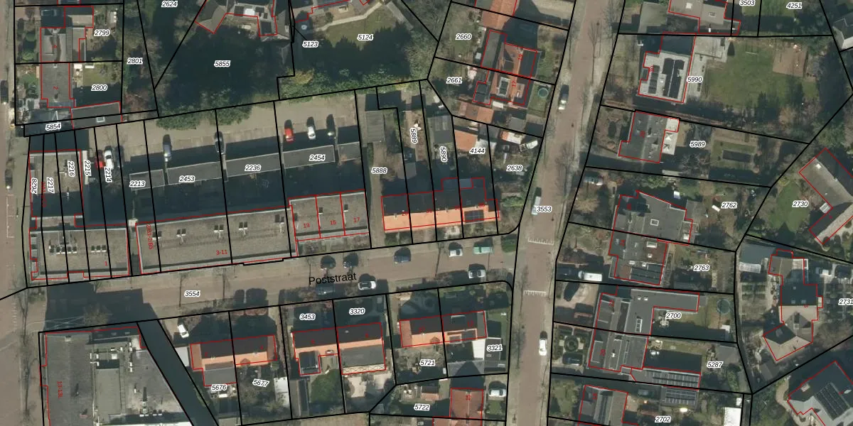 Gebruik de zoekbalk of klik op een perceel voor informatie over de adressen binnen dit perceel.