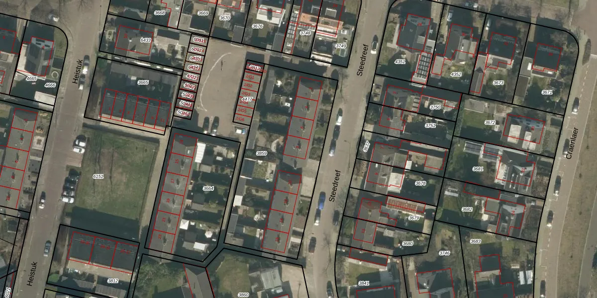 Het perceel waarop Steedreef 8 staat heeft een oppervlakte van 1555 m². Dit is een zeer groot perceel. De perceeloppervlakte wordt geregistreerd door het Kadaster. Gedetailleerde informatie over de maten van dit perceel kunt u vinden in het rapport Kadastrale kaart met maatvoering van Steedreef 8.