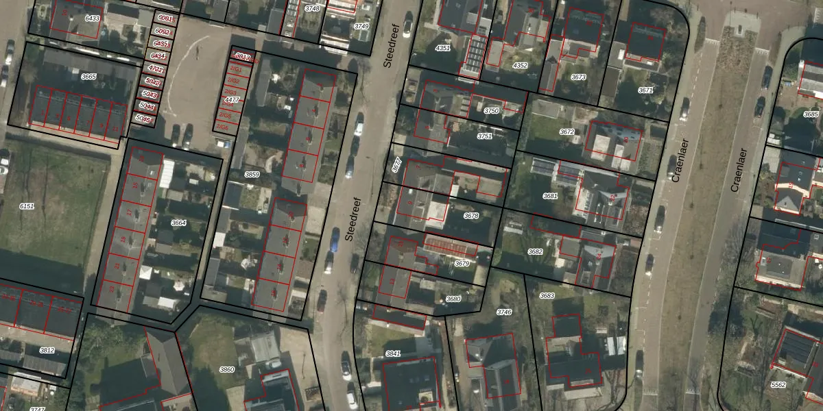 Steedreef 9 is gelegen op kadastraal perceel GNK01D3678. Deze kadastrale aanduiding is uniek en wordt gebruikt door het Kadaster om eigendomsrechten en andere zakelijke rechten vast te leggen. Het perceel maakt onderdeel uit van de kadastrale gemeente Nieuw-Ginneken.