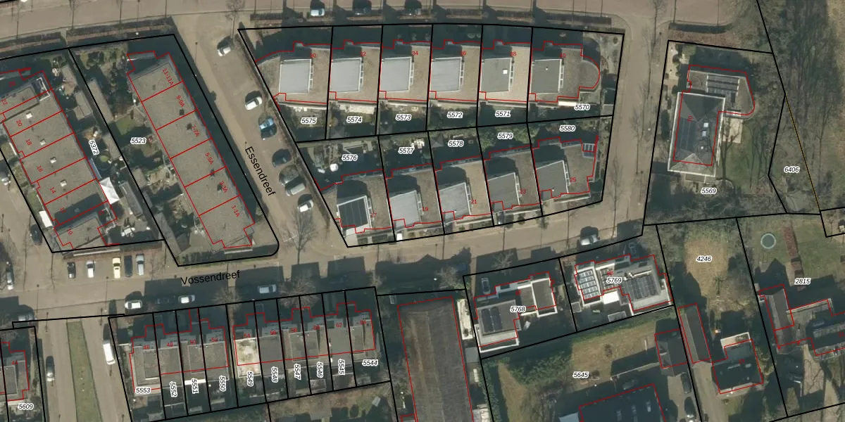 Vossendreef 19 is gelegen op kadastraal perceel GNK01D5577. Deze kadastrale aanduiding is uniek en wordt gebruikt door het Kadaster om eigendomsrechten en andere zakelijke rechten vast te leggen. Het perceel maakt onderdeel uit van de kadastrale gemeente Nieuw-Ginneken.