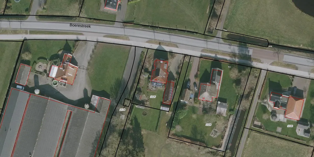 Boerestreek 26 is gelegen op kadastraal perceel URT00E1026. Deze kadastrale aanduiding is uniek en wordt gebruikt door het Kadaster om eigendomsrechten en andere zakelijke rechten vast te leggen. Het perceel maakt onderdeel uit van de kadastrale gemeente Ureterp.