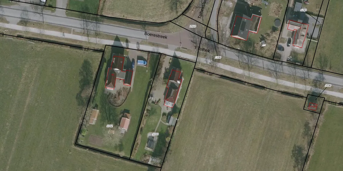 Het perceel waarop Boerestreek 42 staat heeft een oppervlakte van 1250 m². Dit is een zeer groot perceel. De perceeloppervlakte wordt geregistreerd door het Kadaster. Gedetailleerde informatie over de maten van dit perceel kunt u vinden in het rapport Kadastrale kaart met maatvoering van Boerestreek 42.
