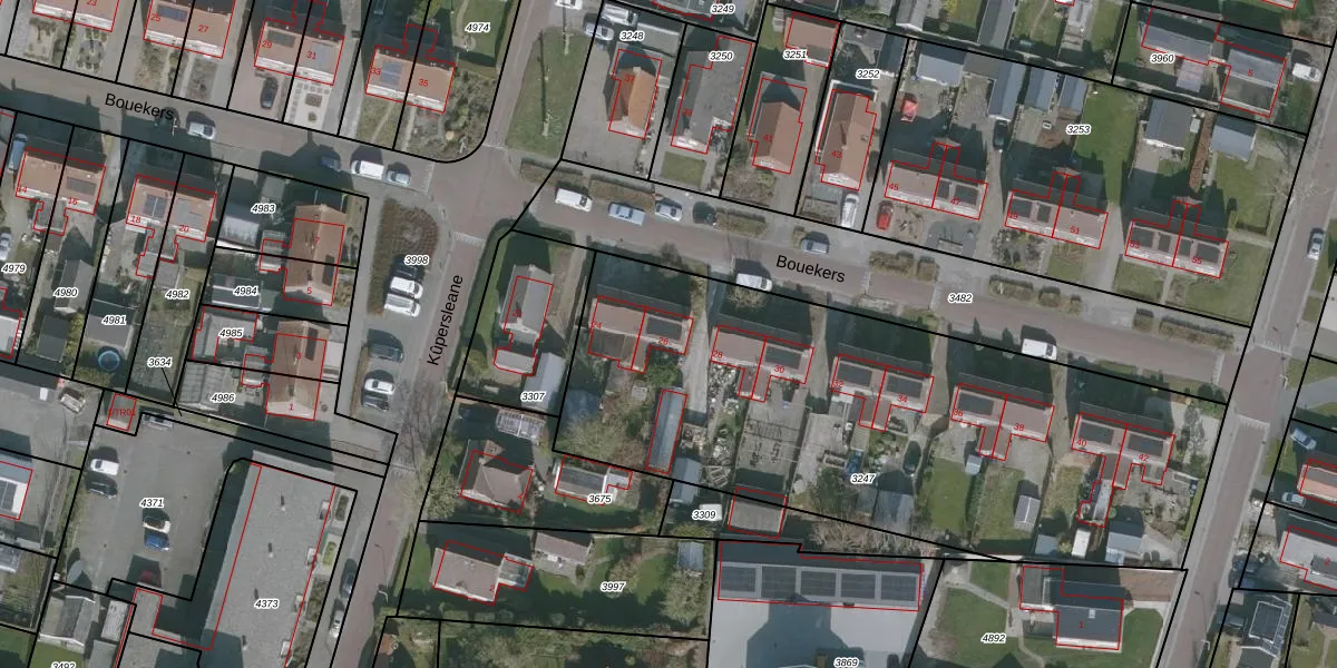 Het perceel waarop Bouekers 26 staat heeft een oppervlakte van 2885 m². Dit is een zeer groot perceel. De perceeloppervlakte wordt geregistreerd door het Kadaster. Gedetailleerde informatie over de maten van dit perceel kunt u vinden in het rapport Kadastrale kaart met maatvoering van Bouekers 26.