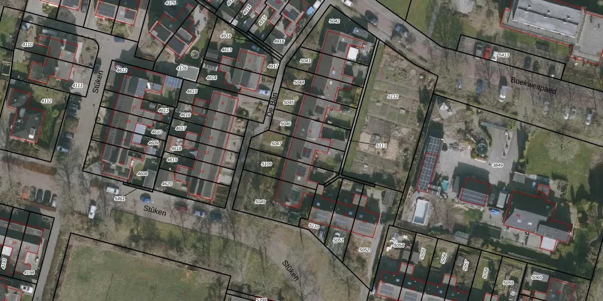 Gebruik de zoekbalk of klik op een perceel voor informatie over de adressen binnen dit perceel.