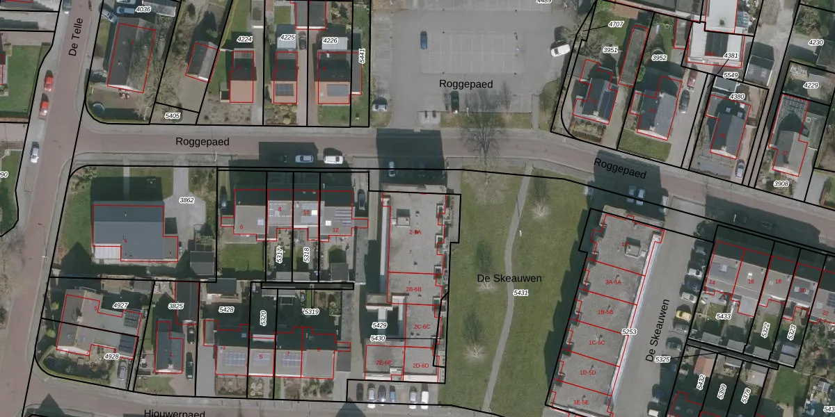 Het perceel waarop De Skeauwen 4 staat heeft een oppervlakte van 1745 m². Dit is een zeer groot perceel. De perceeloppervlakte wordt geregistreerd door het Kadaster. Gedetailleerde informatie over de maten van dit perceel kunt u vinden in het rapport Kadastrale kaart met maatvoering van De Skeauwen 4.
