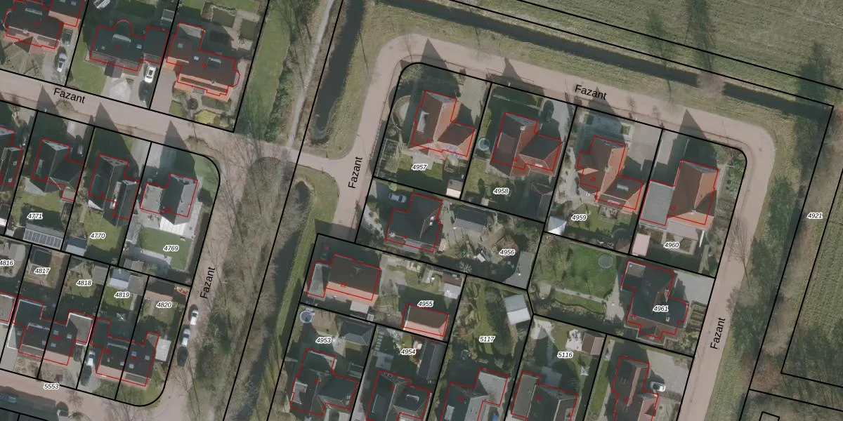 Het perceel waarop Fazant 14 staat heeft een oppervlakte van 697 m². Dit is een groot perceel. De perceeloppervlakte wordt geregistreerd door het Kadaster. Gedetailleerde informatie over de maten van dit perceel kunt u vinden in het rapport Kadastrale kaart met maatvoering van Fazant 14.
