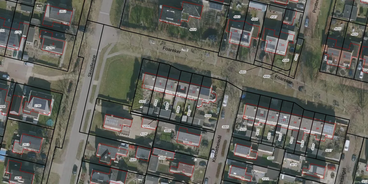 Het perceel waarop Foareker 10 staat heeft een oppervlakte van 173 m². Dit is een middelgroot perceel. De perceeloppervlakte wordt geregistreerd door het Kadaster. Gedetailleerde informatie over de maten van dit perceel kunt u vinden in het rapport Kadastrale kaart met maatvoering van Foareker 10.