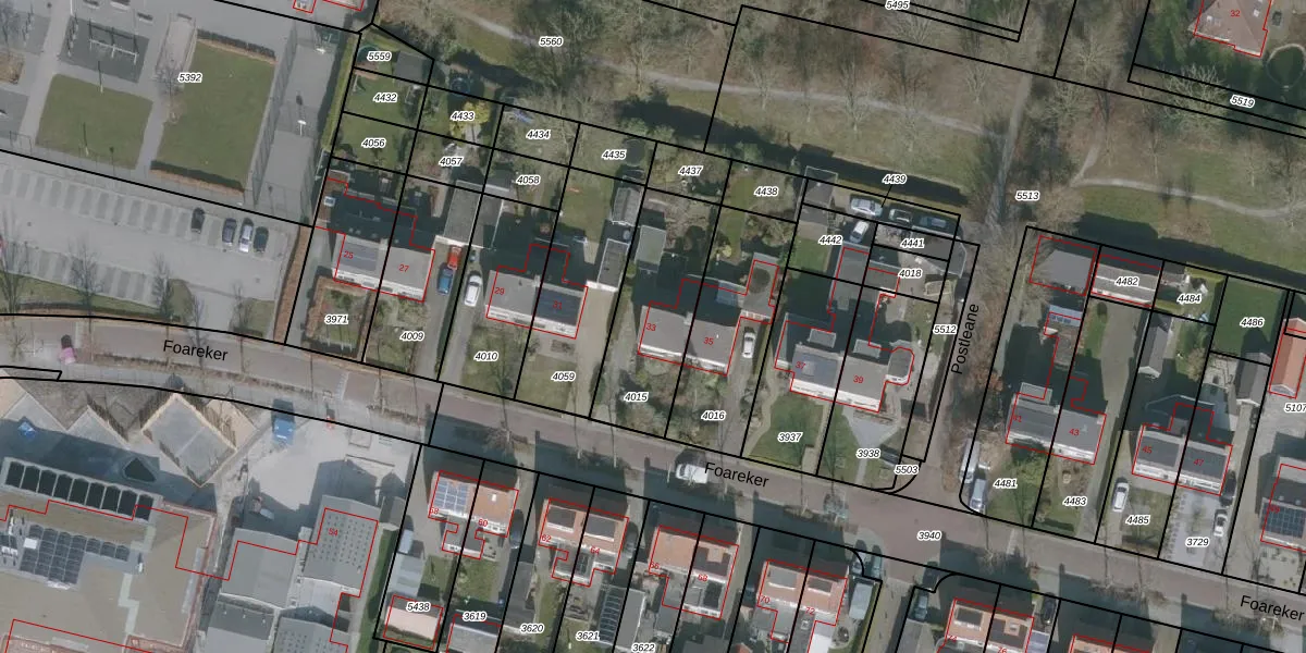 Het perceel waarop Foareker 33 staat heeft een oppervlakte van 441 m². Dit is een groot perceel. De perceeloppervlakte wordt geregistreerd door het Kadaster. Gedetailleerde informatie over de maten van dit perceel kunt u vinden in het rapport Kadastrale kaart met maatvoering van Foareker 33.
