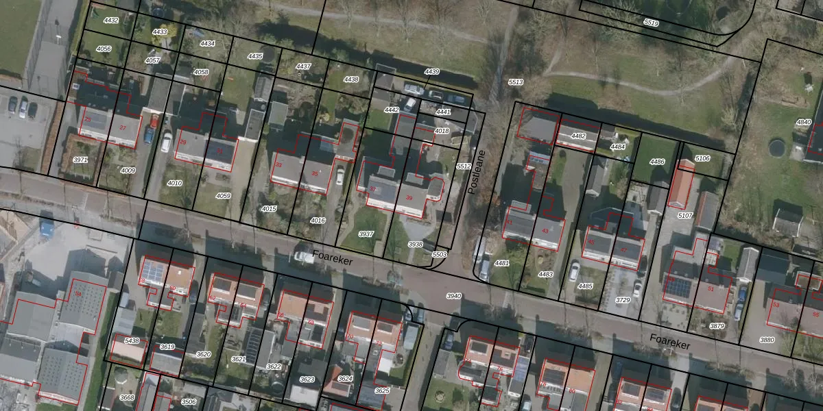 Het perceel waarop Foareker 39 staat heeft een oppervlakte van 355 m². Dit is een groot perceel. De perceeloppervlakte wordt geregistreerd door het Kadaster. Gedetailleerde informatie over de maten van dit perceel kunt u vinden in het rapport Kadastrale kaart met maatvoering van Foareker 39.