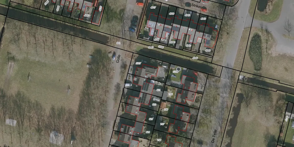 Het perceel waarop Golle 1 staat heeft een oppervlakte van 378 m². Dit is een groot perceel. De perceeloppervlakte wordt geregistreerd door het Kadaster. Gedetailleerde informatie over de maten van dit perceel kunt u vinden in het rapport Kadastrale kaart met maatvoering van Golle 1.