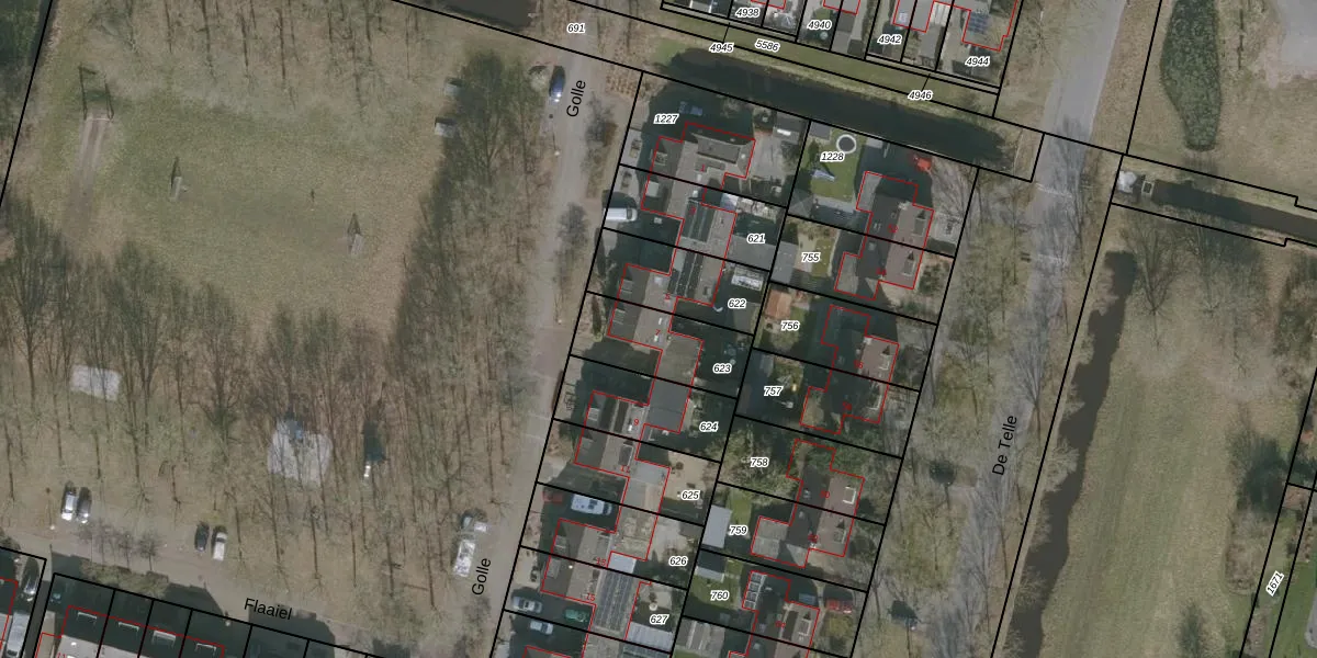 Het perceel waarop Golle 7 staat heeft een oppervlakte van 265 m². Dit is een middelgroot perceel. De perceeloppervlakte wordt geregistreerd door het Kadaster. Gedetailleerde informatie over de maten van dit perceel kunt u vinden in het rapport Kadastrale kaart met maatvoering van Golle 7.
