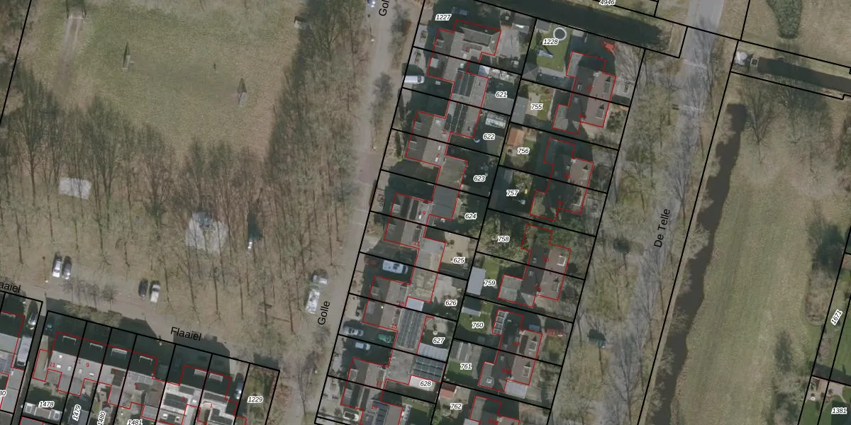 Het perceel waarop Golle 9 staat heeft een oppervlakte van 265 m². Dit is een middelgroot perceel. De perceeloppervlakte wordt geregistreerd door het Kadaster. Gedetailleerde informatie over de maten van dit perceel kunt u vinden in het rapport Kadastrale kaart met maatvoering van Golle 9.