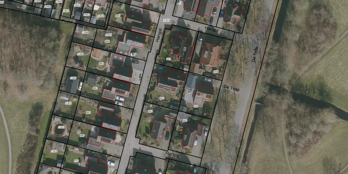 Het perceel waarop Harspit 5 staat heeft een oppervlakte van 460 m². Dit is een groot perceel. De perceeloppervlakte wordt geregistreerd door het Kadaster. Gedetailleerde informatie over de maten van dit perceel kunt u vinden in het rapport Kadastrale kaart met maatvoering van Harspit 5.