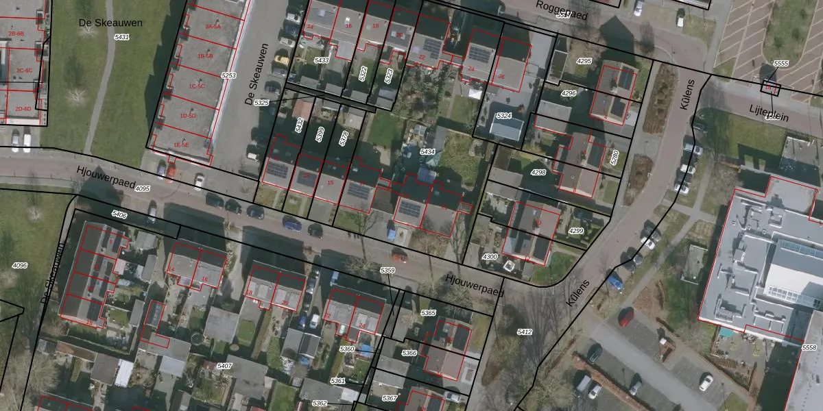 Het perceel waarop Hjouwerpaed 19 staat heeft een oppervlakte van 1603 m². Dit is een zeer groot perceel. De perceeloppervlakte wordt geregistreerd door het Kadaster. Gedetailleerde informatie over de maten van dit perceel kunt u vinden in het rapport Kadastrale kaart met maatvoering van Hjouwerpaed 19.