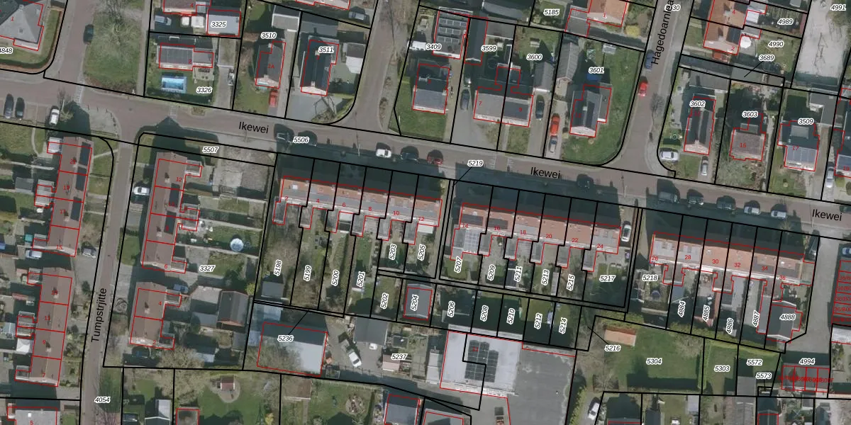 Ikewei 12 is gelegen op kadastraal perceel URT00A5205. Deze kadastrale aanduiding is uniek en wordt gebruikt door het Kadaster om eigendomsrechten en andere zakelijke rechten vast te leggen. Het perceel maakt onderdeel uit van de kadastrale gemeente Ureterp.