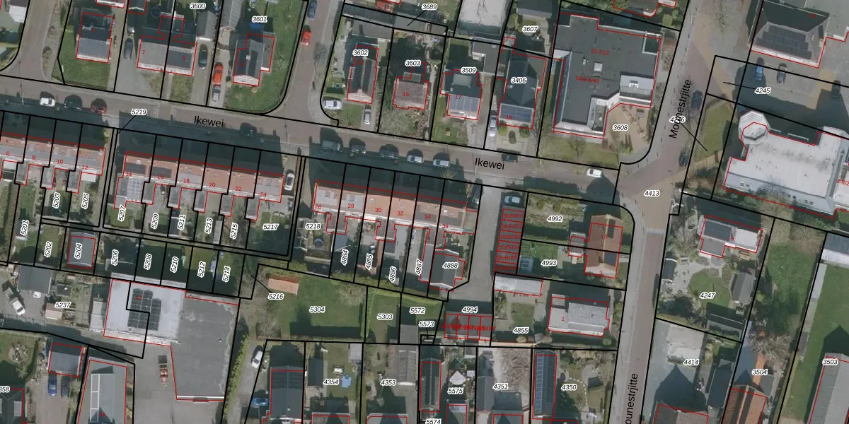 Het perceel waarop Ikewei 34 staat heeft een oppervlakte van 166 m². Dit is een middelgroot perceel. De perceeloppervlakte wordt geregistreerd door het Kadaster. Gedetailleerde informatie over de maten van dit perceel kunt u vinden in het rapport Kadastrale kaart met maatvoering van Ikewei 34.