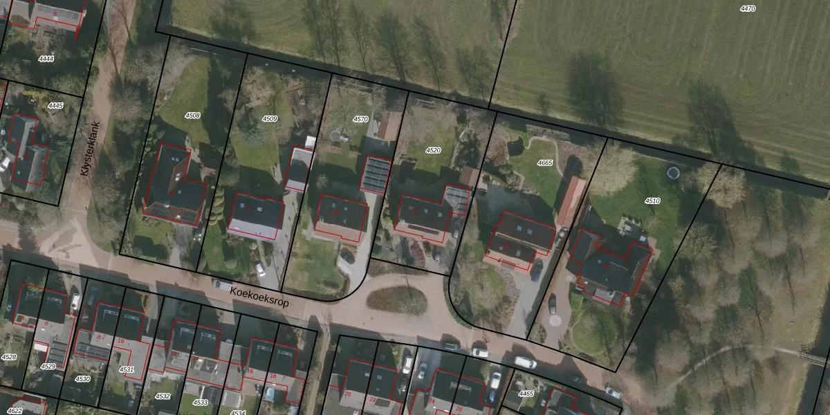Het perceel waarop Koekoeksrop 21 staat heeft een oppervlakte van 860 m². Dit is een groot perceel. De perceeloppervlakte wordt geregistreerd door het Kadaster. Gedetailleerde informatie over de maten van dit perceel kunt u vinden in het rapport Kadastrale kaart met maatvoering van Koekoeksrop 21.