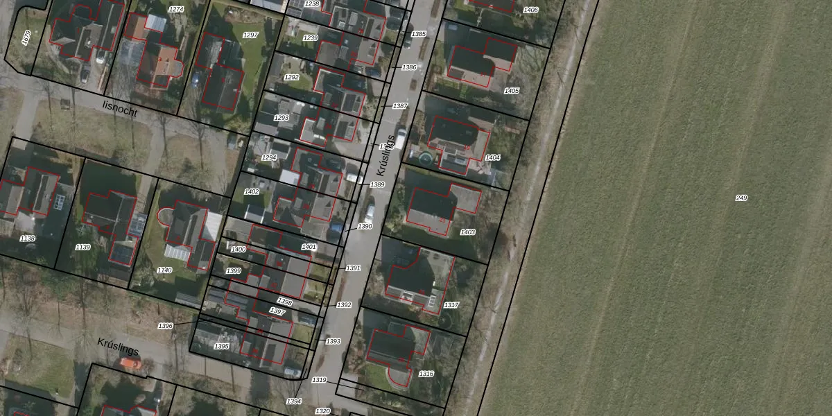 Het perceel waarop Krúslings 21 staat heeft een oppervlakte van 490 m². Dit is een groot perceel. De perceeloppervlakte wordt geregistreerd door het Kadaster. Gedetailleerde informatie over de maten van dit perceel kunt u vinden in het rapport Kadastrale kaart met maatvoering van Krúslings 21.