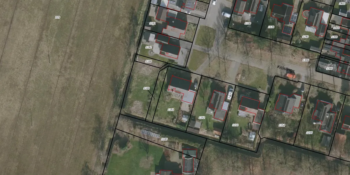 Krúslings 43 is gelegen op kadastraal perceel URT00E1143. Deze kadastrale aanduiding is uniek en wordt gebruikt door het Kadaster om eigendomsrechten en andere zakelijke rechten vast te leggen. Het perceel maakt onderdeel uit van de kadastrale gemeente Ureterp.