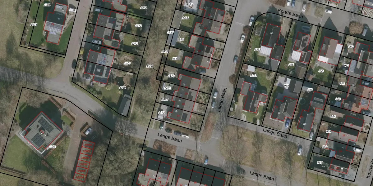 Het perceel waarop Lange Baan 20 staat heeft een oppervlakte van 165 m². Dit is een middelgroot perceel. De perceeloppervlakte wordt geregistreerd door het Kadaster. Gedetailleerde informatie over de maten van dit perceel kunt u vinden in het rapport Kadastrale kaart met maatvoering van Lange Baan 20.