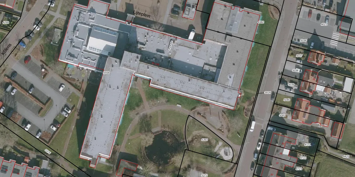 Het perceel waarop Lijteplein 56-A-019 staat heeft een oppervlakte van 1,3 ha. Dit is een zeer groot perceel. De perceeloppervlakte wordt geregistreerd door het Kadaster. Gedetailleerde informatie over de maten van dit perceel kunt u vinden in het rapport Kadastrale kaart met maatvoering van Lijteplein 56-A-019.