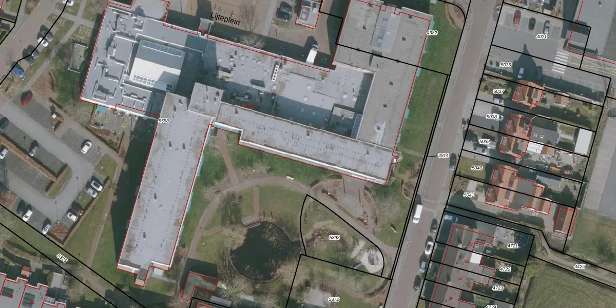 Het perceel waarop Lijteplein 56-A-020 staat heeft een oppervlakte van 1,3 ha. Dit is een zeer groot perceel. De perceeloppervlakte wordt geregistreerd door het Kadaster. Gedetailleerde informatie over de maten van dit perceel kunt u vinden in het rapport Kadastrale kaart met maatvoering van Lijteplein 56-A-020.