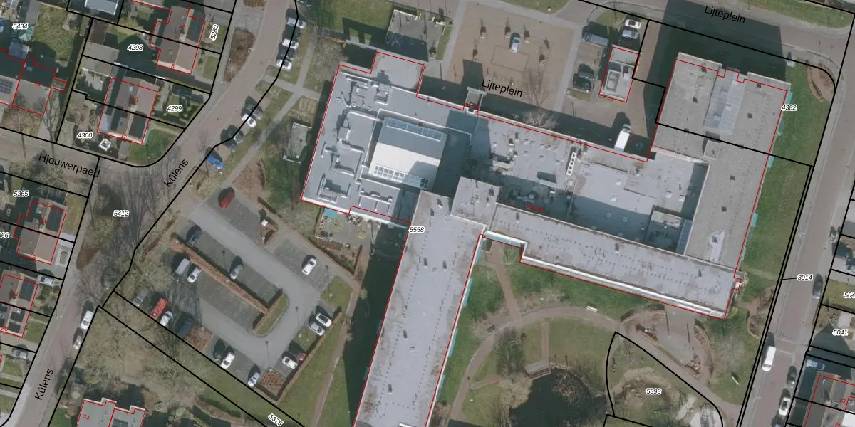 Het perceel waarop Lijteplein 56-A-117 staat heeft een oppervlakte van 1,3 ha. Dit is een zeer groot perceel. De perceeloppervlakte wordt geregistreerd door het Kadaster. Gedetailleerde informatie over de maten van dit perceel kunt u vinden in het rapport Kadastrale kaart met maatvoering van Lijteplein 56-A-117.