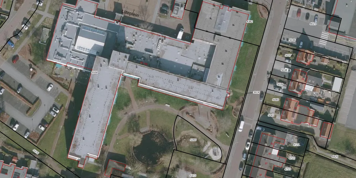 Het perceel waarop Lijteplein 56-A-122 staat heeft een oppervlakte van 1,3 ha. Dit is een zeer groot perceel. De perceeloppervlakte wordt geregistreerd door het Kadaster. Gedetailleerde informatie over de maten van dit perceel kunt u vinden in het rapport Kadastrale kaart met maatvoering van Lijteplein 56-A-122.