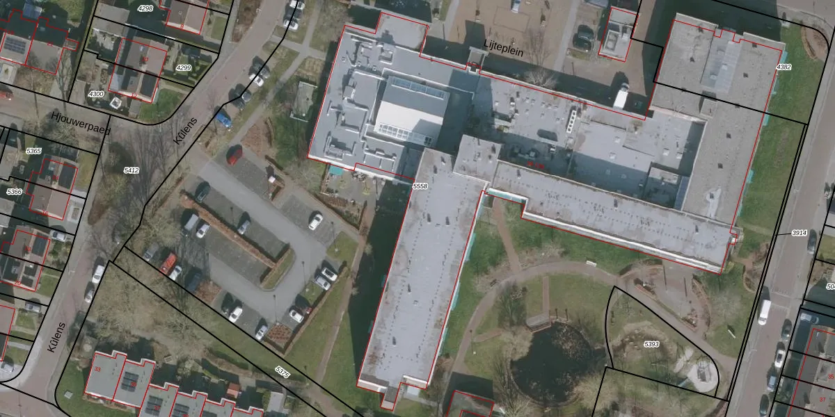 Het perceel waarop Lijteplein 56-A-215 staat heeft een oppervlakte van 1,3 ha. Dit is een zeer groot perceel. De perceeloppervlakte wordt geregistreerd door het Kadaster. Gedetailleerde informatie over de maten van dit perceel kunt u vinden in het rapport Kadastrale kaart met maatvoering van Lijteplein 56-A-215.