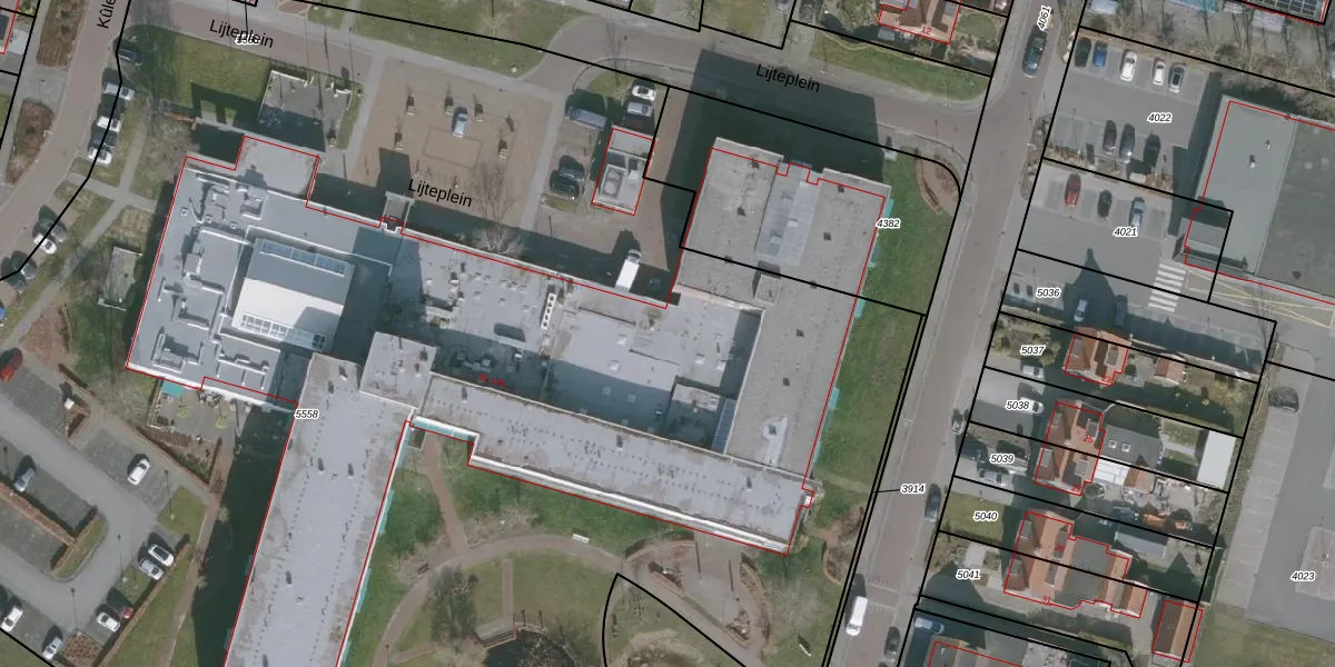 Het perceel waarop Lijteplein 62 staat heeft een oppervlakte van 1,3 ha. Dit is een zeer groot perceel. De perceeloppervlakte wordt geregistreerd door het Kadaster. Gedetailleerde informatie over de maten van dit perceel kunt u vinden in het rapport Kadastrale kaart met maatvoering van Lijteplein 62.