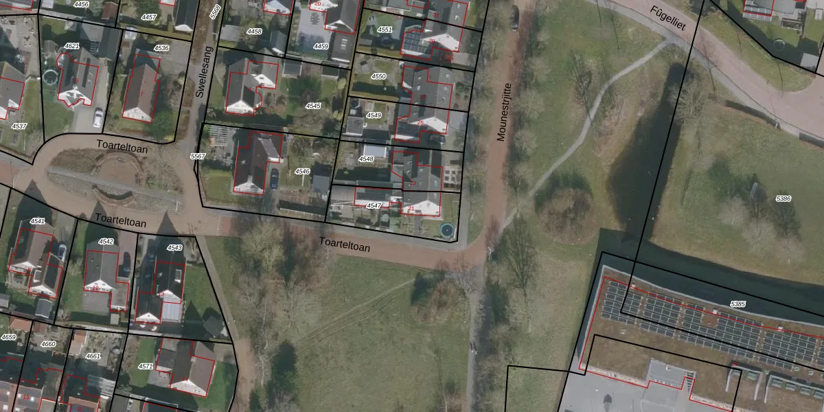 Mounestrjitte 21 is gelegen op kadastraal perceel URT00A4547. Deze kadastrale aanduiding is uniek en wordt gebruikt door het Kadaster om eigendomsrechten en andere zakelijke rechten vast te leggen. Het perceel maakt onderdeel uit van de kadastrale gemeente Ureterp.