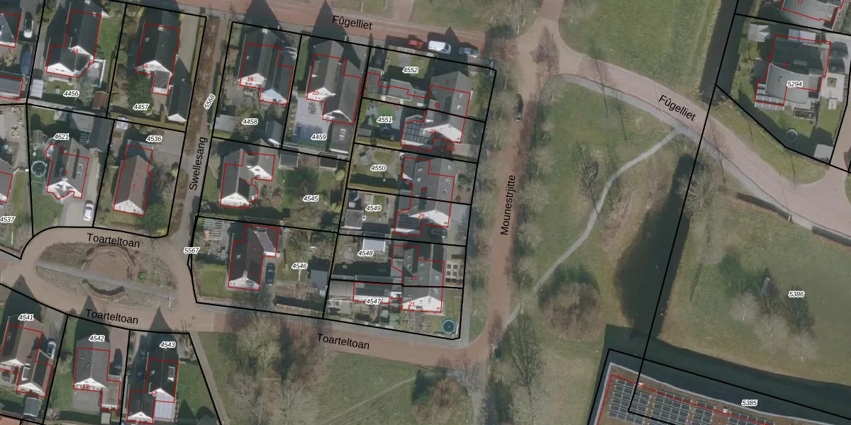 Het perceel waarop Mounestrjitte 25 staat heeft een oppervlakte van 312 m². Dit is een groot perceel. De perceeloppervlakte wordt geregistreerd door het Kadaster. Gedetailleerde informatie over de maten van dit perceel kunt u vinden in het rapport Kadastrale kaart met maatvoering van Mounestrjitte 25.
