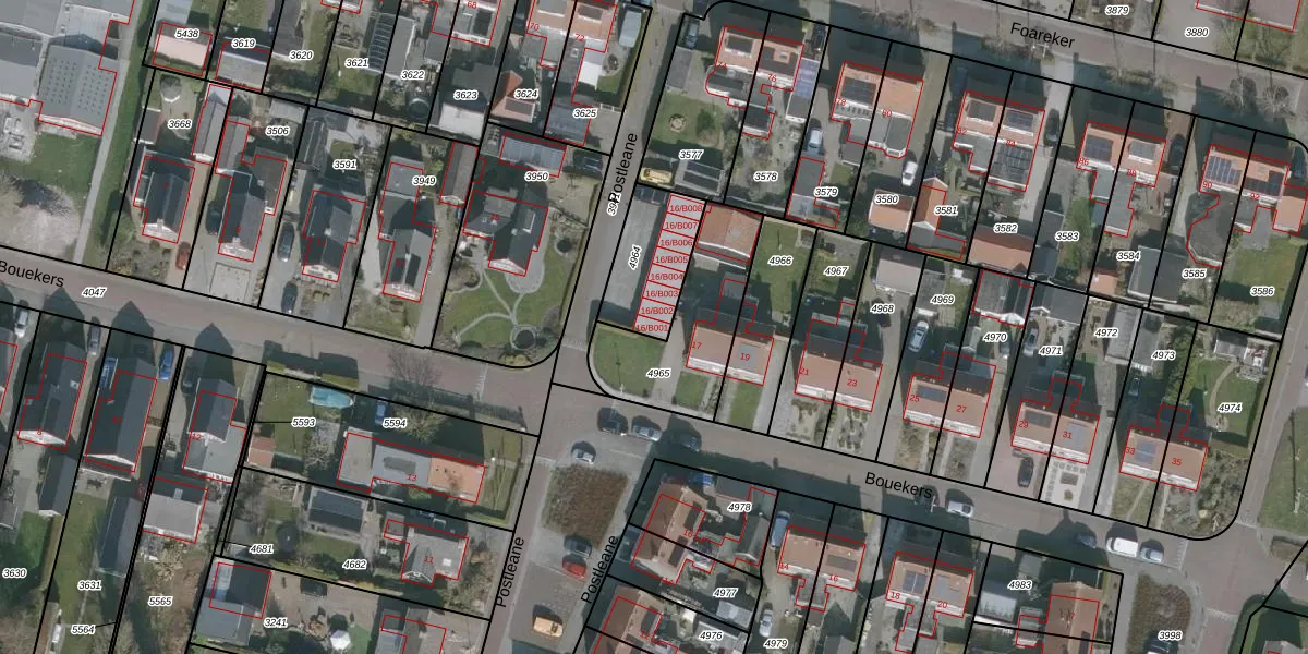 Postleane 16-B001 is gelegen op kadastraal perceel URT00A4964. Deze kadastrale aanduiding is uniek en wordt gebruikt door het Kadaster om eigendomsrechten en andere zakelijke rechten vast te leggen. Het perceel maakt onderdeel uit van de kadastrale gemeente Ureterp.
