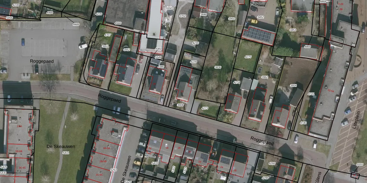 Het perceel waarop Roggepaed 27 staat heeft een oppervlakte van 294 m². Dit is een middelgroot perceel. De perceeloppervlakte wordt geregistreerd door het Kadaster. Gedetailleerde informatie over de maten van dit perceel kunt u vinden in het rapport Kadastrale kaart met maatvoering van Roggepaed 27.