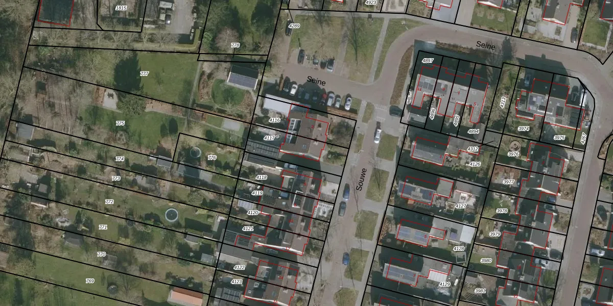 Het perceel waarop Souwe 4 staat heeft een oppervlakte van 300 m². Dit is een groot perceel. De perceeloppervlakte wordt geregistreerd door het Kadaster. Gedetailleerde informatie over de maten van dit perceel kunt u vinden in het rapport Kadastrale kaart met maatvoering van Souwe 4.