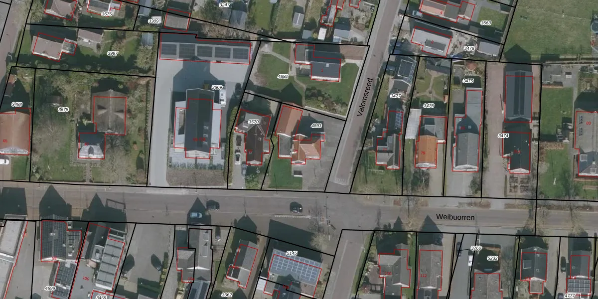 Het perceel waarop Weibuorren 75 staat heeft een oppervlakte van 584 m². Dit is een groot perceel. De perceeloppervlakte wordt geregistreerd door het Kadaster. Gedetailleerde informatie over de maten van dit perceel kunt u vinden in het rapport Kadastrale kaart met maatvoering van Weibuorren 75.