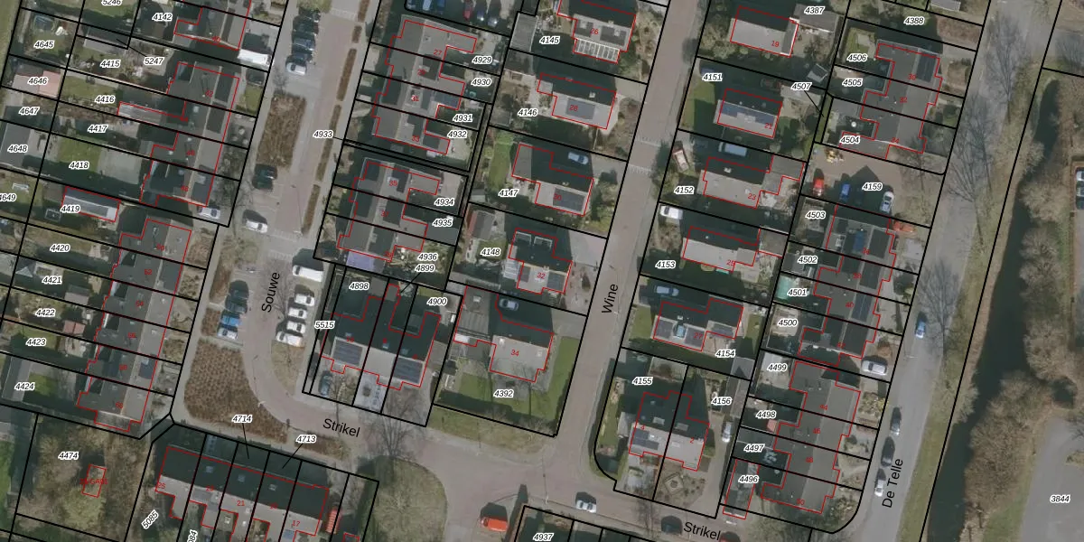 Gebruik de zoekbalk of klik op een perceel voor informatie over de adressen binnen dit perceel.