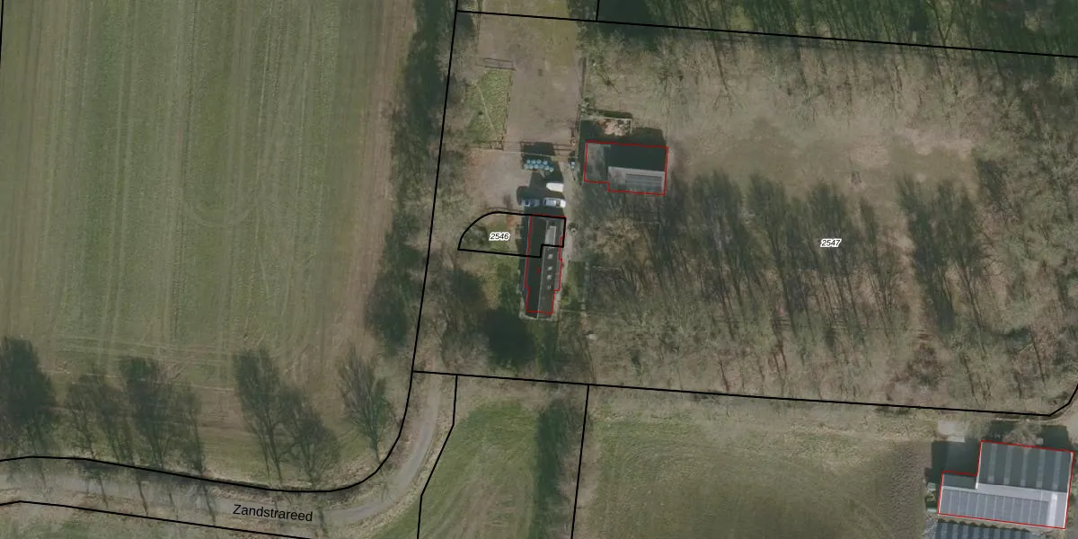 Het perceel waarop Zandstrareed 2 staat heeft een oppervlakte van 8056 m². Dit is een zeer groot perceel. De perceeloppervlakte wordt geregistreerd door het Kadaster. Gedetailleerde informatie over de maten van dit perceel kunt u vinden in het rapport Kadastrale kaart met maatvoering van Zandstrareed 2.