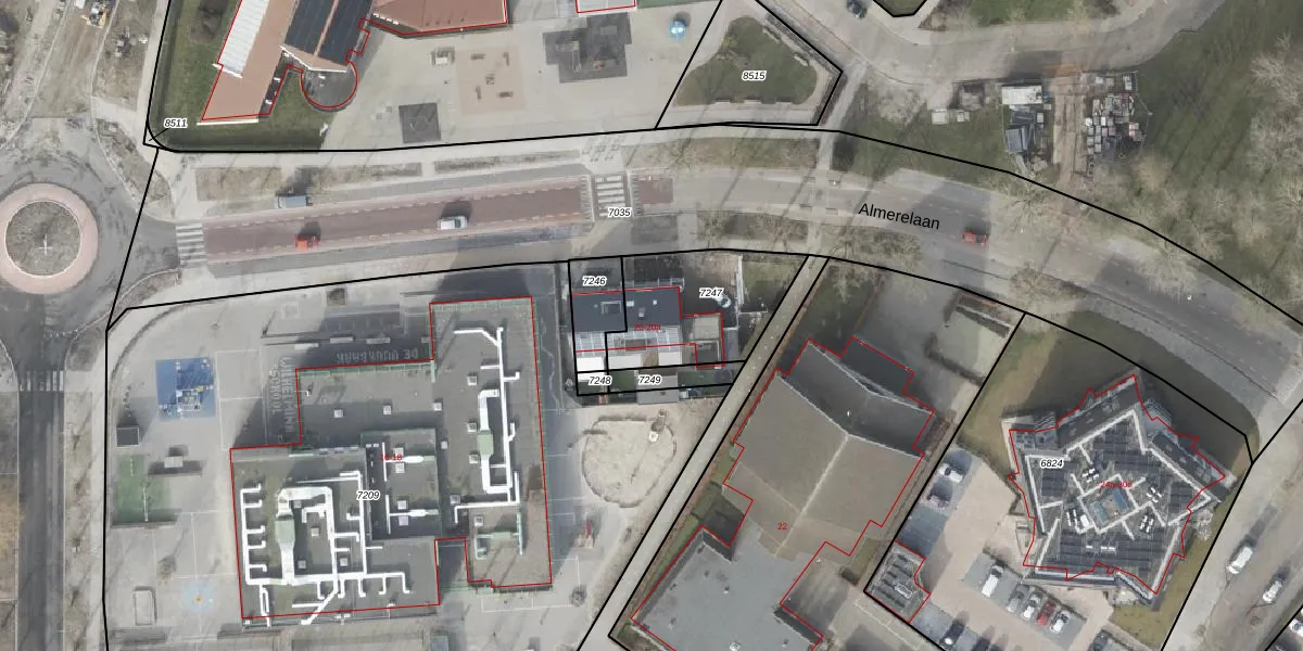 Almerelaan 20 is gelegen op kadastraal perceel URK00B7247. Deze kadastrale aanduiding is uniek en wordt gebruikt door het Kadaster om eigendomsrechten en andere zakelijke rechten vast te leggen. Het perceel maakt onderdeel uit van de kadastrale gemeente Urk.