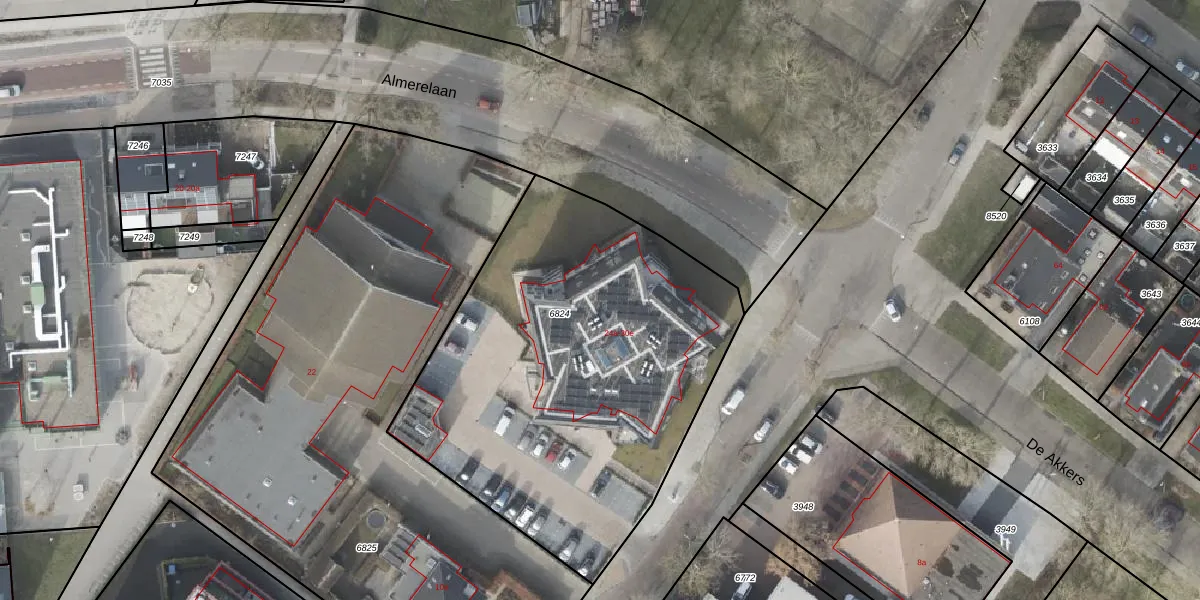Almerelaan 24-b is gelegen op kadastraal perceel URK00B6824. Deze kadastrale aanduiding is uniek en wordt gebruikt door het Kadaster om eigendomsrechten en andere zakelijke rechten vast te leggen. Het perceel maakt onderdeel uit van de kadastrale gemeente Urk.