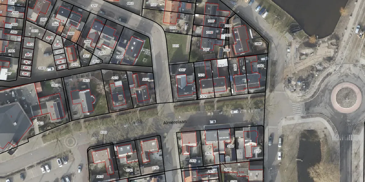 Gebruik de zoekbalk of klik op een perceel voor informatie over de adressen binnen dit perceel.