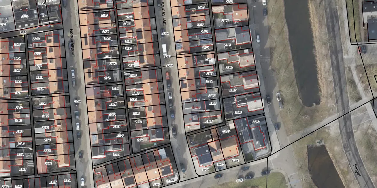 Gebruik de zoekbalk of klik op een perceel voor informatie over de adressen binnen dit perceel.