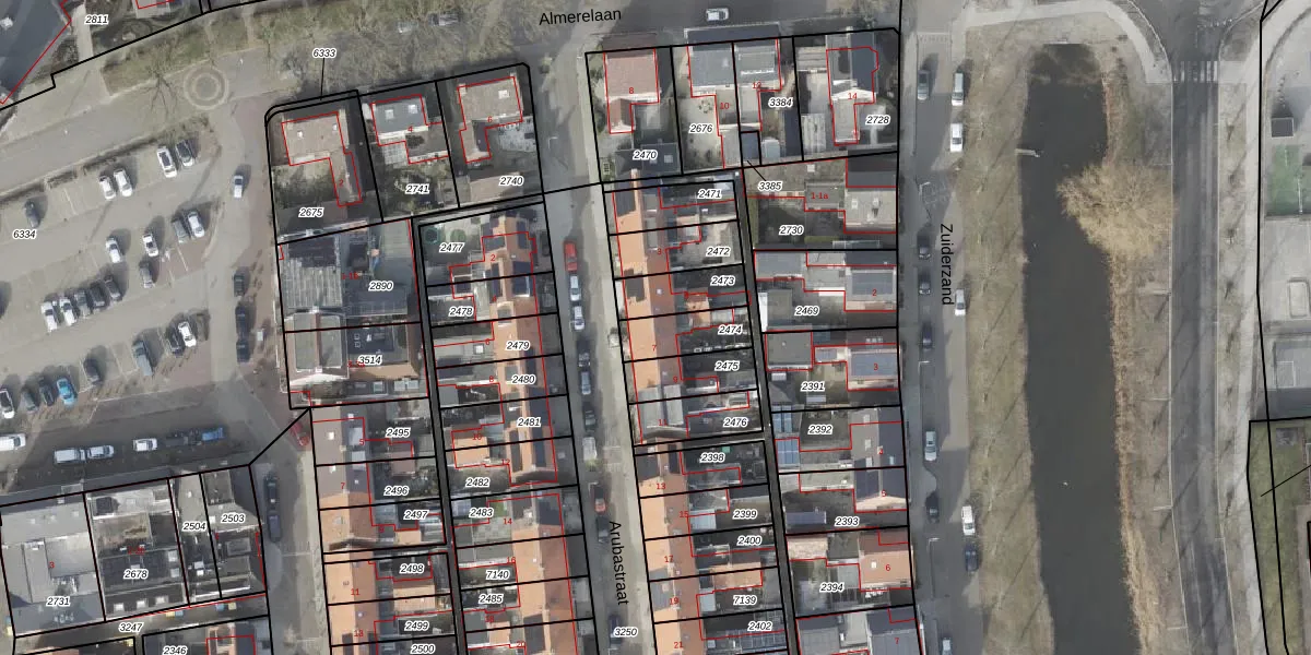 Gebruik de zoekbalk of klik op een perceel voor informatie over de adressen binnen dit perceel.