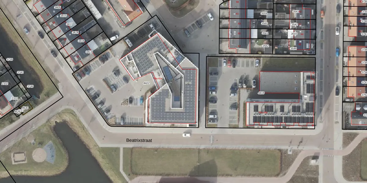 Beatrixstraat 35-e is gelegen op kadastraal perceel URK00C4422. Deze kadastrale aanduiding is uniek en wordt gebruikt door het Kadaster om eigendomsrechten en andere zakelijke rechten vast te leggen. Het perceel maakt onderdeel uit van de kadastrale gemeente Urk.