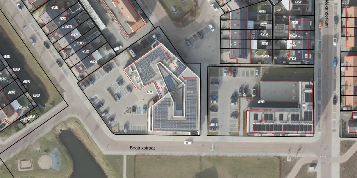 Beatrixstraat 41-e is gelegen op kadastraal perceel URK00C4422. Deze kadastrale aanduiding is uniek en wordt gebruikt door het Kadaster om eigendomsrechten en andere zakelijke rechten vast te leggen. Het perceel maakt onderdeel uit van de kadastrale gemeente Urk.
