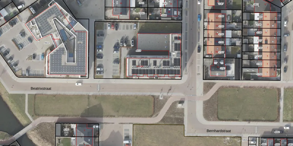 Beatrixstraat 43-b is gelegen op kadastraal perceel URK00C4418. Deze kadastrale aanduiding is uniek en wordt gebruikt door het Kadaster om eigendomsrechten en andere zakelijke rechten vast te leggen. Het perceel maakt onderdeel uit van de kadastrale gemeente Urk.