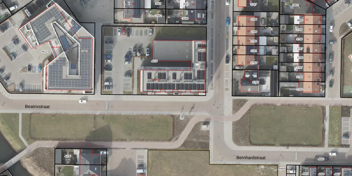 Beatrixstraat 43-c is gelegen op kadastraal perceel URK00C4418. Deze kadastrale aanduiding is uniek en wordt gebruikt door het Kadaster om eigendomsrechten en andere zakelijke rechten vast te leggen. Het perceel maakt onderdeel uit van de kadastrale gemeente Urk.