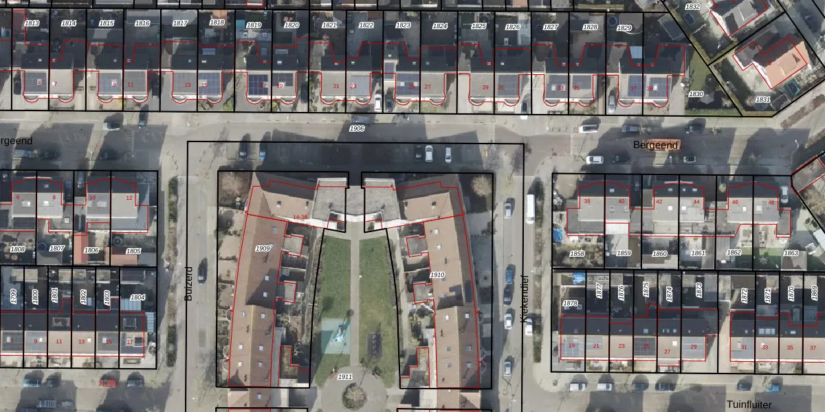 Het perceel waarop Bergeend 32 staat heeft een oppervlakte van 1335 m². Dit is een zeer groot perceel. De perceeloppervlakte wordt geregistreerd door het Kadaster. Gedetailleerde informatie over de maten van dit perceel kunt u vinden in het rapport Kadastrale kaart met maatvoering van Bergeend 32.