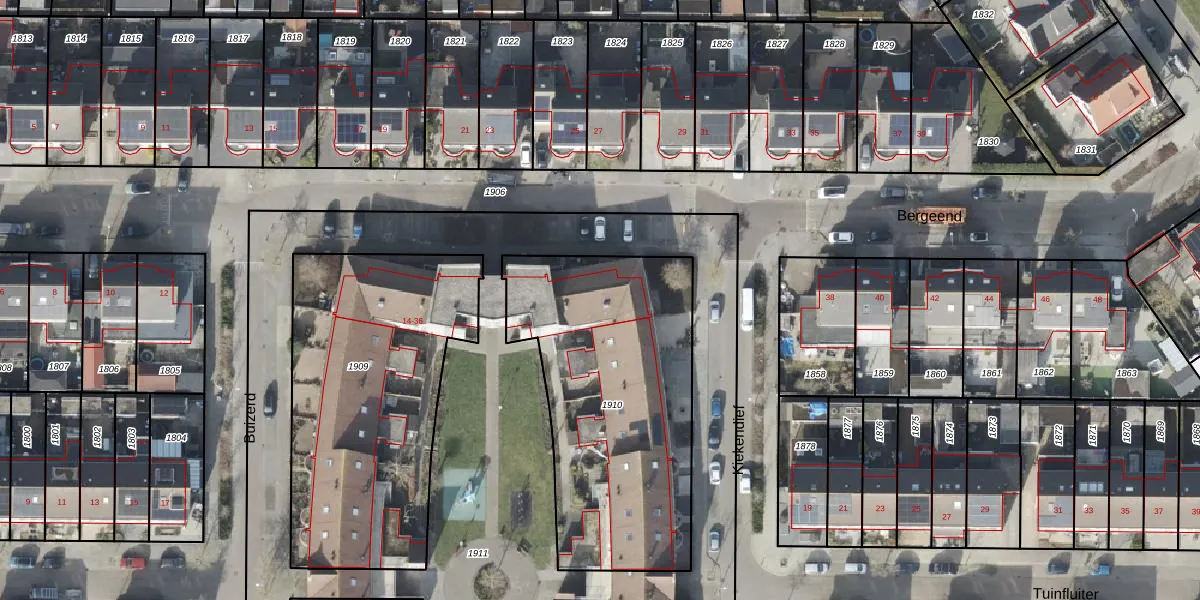 Het perceel waarop Bergeend 34 staat heeft een oppervlakte van 1335 m². Dit is een zeer groot perceel. De perceeloppervlakte wordt geregistreerd door het Kadaster. Gedetailleerde informatie over de maten van dit perceel kunt u vinden in het rapport Kadastrale kaart met maatvoering van Bergeend 34.