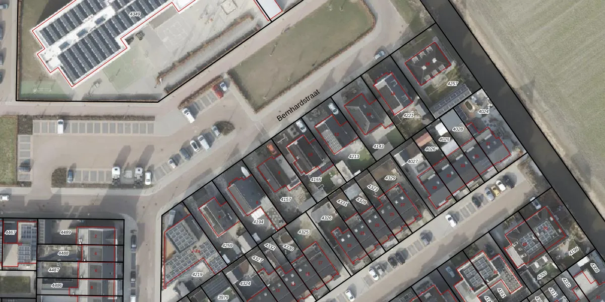 Het perceel waarop Bernhardstraat 10 staat heeft een oppervlakte van 316 m². Dit is een groot perceel. De perceeloppervlakte wordt geregistreerd door het Kadaster. Gedetailleerde informatie over de maten van dit perceel kunt u vinden in het rapport Kadastrale kaart met maatvoering van Bernhardstraat 10.